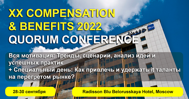 28-30 сентября при поддержки Русской Школы Управления пройдет конференция XX COMPENSATION & BENEFITS 2022.