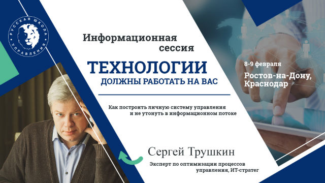 РШУ приглашает предпринимателей, топ-менеджеров, руководителей отделов, маркетологов, бизнес-аналитиков и тренеров на информационную сессию «Технологии должны работать на вас! Как построить личную систему управления и не утонуть в информационном потоке».